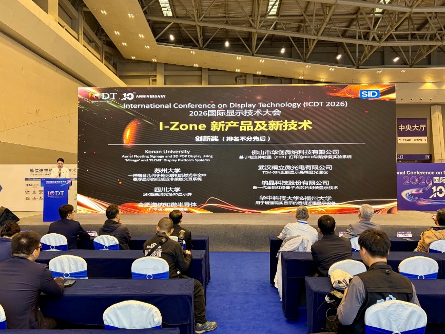 2026年3月31日至4月3日,国际显示技术大会(ICDT 2026)在重庆悦来国际会议中心与重庆国际博览中心隆重举行。作为SID(国际信息显示学会)在中国大陆举办的年度显示技术盛会,本届大会正值十周年庆典,吸引了来自全球20余个国家和地区的2000余名专家学者、企业高管及科研人员参会,涵盖全球显示产业上下游企业、科研机构、高校及投资机构。共设置95场分论坛、30项活动,包含1000多场高质量技术报告,涵盖18个前沿显示技术领域,全面展示显示技术各细分领域的最新成果与应用前景。