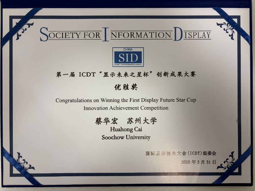 ICDT 2026 “显示未来之星杯”创新成果大赛 优胜奖